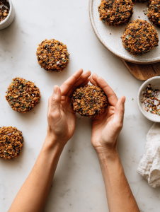 The messy beauty of these burgers is that they’re forgiving. Each batch is a little different, which keeps the process lively. Sometimes the pan’s too hot, sometimes the beans need a little more love. But that’s part of the charm — a reminder that good food isn’t about perfection, but about the stories we tell through our hands and smells.