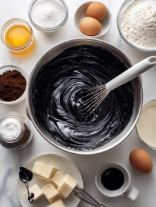 - Add a few drops of black gel food coloring to the batter and fold in until the color is deep, jet black, and uniform. Adjust the dye as needed for the perfect dark hue.