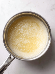 - Bring to a gentle boil at 115°C (240°F). Watch for a slight shimmer and smell of caramelizing sugar.