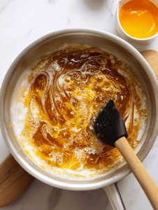 - Stir constantly with a rubber spatula as the mixture begins to melt and bubble, releasing a sweet, caramel aroma.