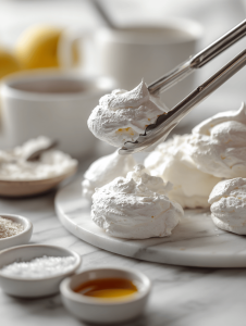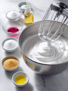 - Fold in lemon zest and vanilla gently. Test by lifting the whisk—peaks should hold firm.