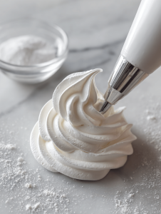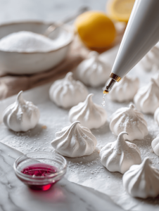 - Fill piping bag with meringue mixture.