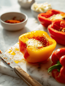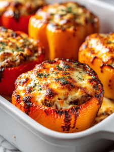 - Serve the peppers whole or cut into slices, making sure to enjoy the crispy edges and melty cheese with each bite. These festive stuffed peppers are ready to impress!