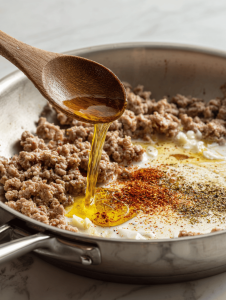 - In the skillet, heat a splash of oil over medium-high (about 180°C / 356°F). Add ground meat, seasonings, and cook until browned, about 8 minutes.