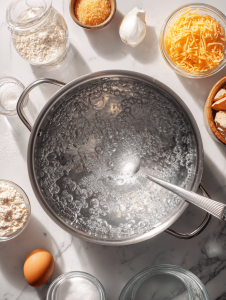 5. Preheat your oven to 220°C (425°F). Prepare a large pot with 4 cups of water and add the baking soda, bringing it to a boil.