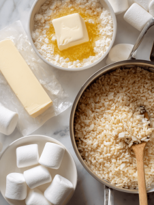 - Measure out all your ingredients, lining up marshmallows, butter, and cereal for an easy flow.