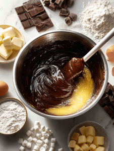 3. In a large bowl, mix the brownie batter ingredients according to the box instructions, then fold in the melted chocolate mixture until well combined.