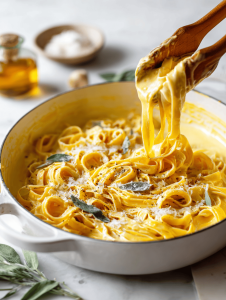 - Serve the pumpkin Alfredo pasta immediately, garnished with additional Parmesan and a few fresh sage leaves if desired. Enjoy the warm, velvety texture and seasonal flavors in every bite — a perfect cozy meal for fall evenings.