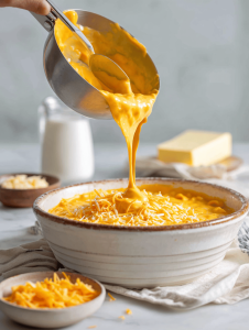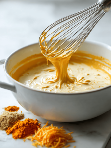 - Gradually add the grated cheese, whisking continuously until the cheese melts completely and the sauce becomes silky and creamy.