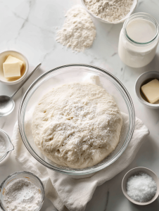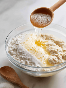 4. Cover the bowl with a damp cloth and let the dough rise at room temperature for about 1 hour, until it doubles in size and feels airy.