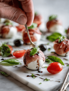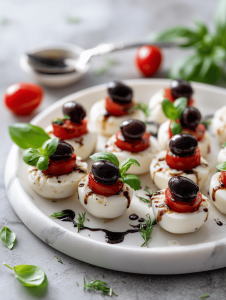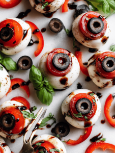 They’re simple but surprisingly fun to make, especially with kids or at a party. The visual impact sparks giggles and reactions, yet they’re fresh and light enough to not weigh down the buffet. The combo of sweet tomato, milky cheese, and smoky olive feels just right for fall. Plus, they’re easy to tweak—more ‘gore’ or less—making them endlessly customizable.