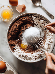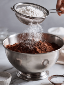 - Mix dry ingredients, including sifted flour and sugar, in a large bowl until combined.