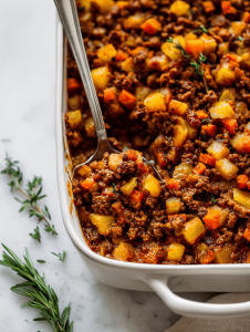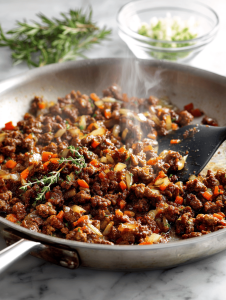 • Ground beef: I like a nice fatty cut for richness, but lean works too if you prefer less grease. Season well—paprika and thyme add smoky depth. Swap in ground turkey if you want a leaner, milder flavor.