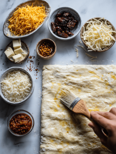 - Puff Pastry Dough: I like a flaky, buttery base that crisps up beautifully in the oven. Swap with pre-made pizza crust if you’re in a rush, but the puff adds a fun layered crunch.
