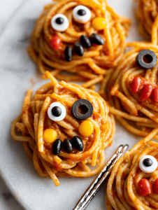 There’s a strange comfort in these messy, spicy bites, especially as nights grow colder. This pasta might not win beauty contests, but it’s honest, loud, and full of flavor—just like a good Halloween night should be.
