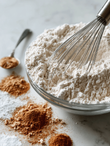 - Sift together the flour, baking powder, cinnamon, nutmeg, and cardamom in a separate bowl. This ensures even distribution of spices and leavening agents.
