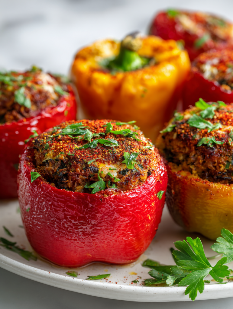 Let the peppers rest for 5 minutes out of the oven. Serve warm, garnished with fresh herbs or a drizzle of olive oil.