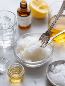 - After 30 minutes, remove the dish from the freezer and use a fork to scrape and break up the icy edges, creating a slushy texture. Return to the freezer and repeat this scraping process every 30 minutes, about 3-4 times, until the mixture is uniformly icy and slushy.