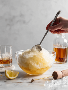 - Once the mixture is thick, icy, and scoopable, give it a final stir and serve immediately in chilled glasses. Optionally, add a dash of bitters on top for extra smoky depth.